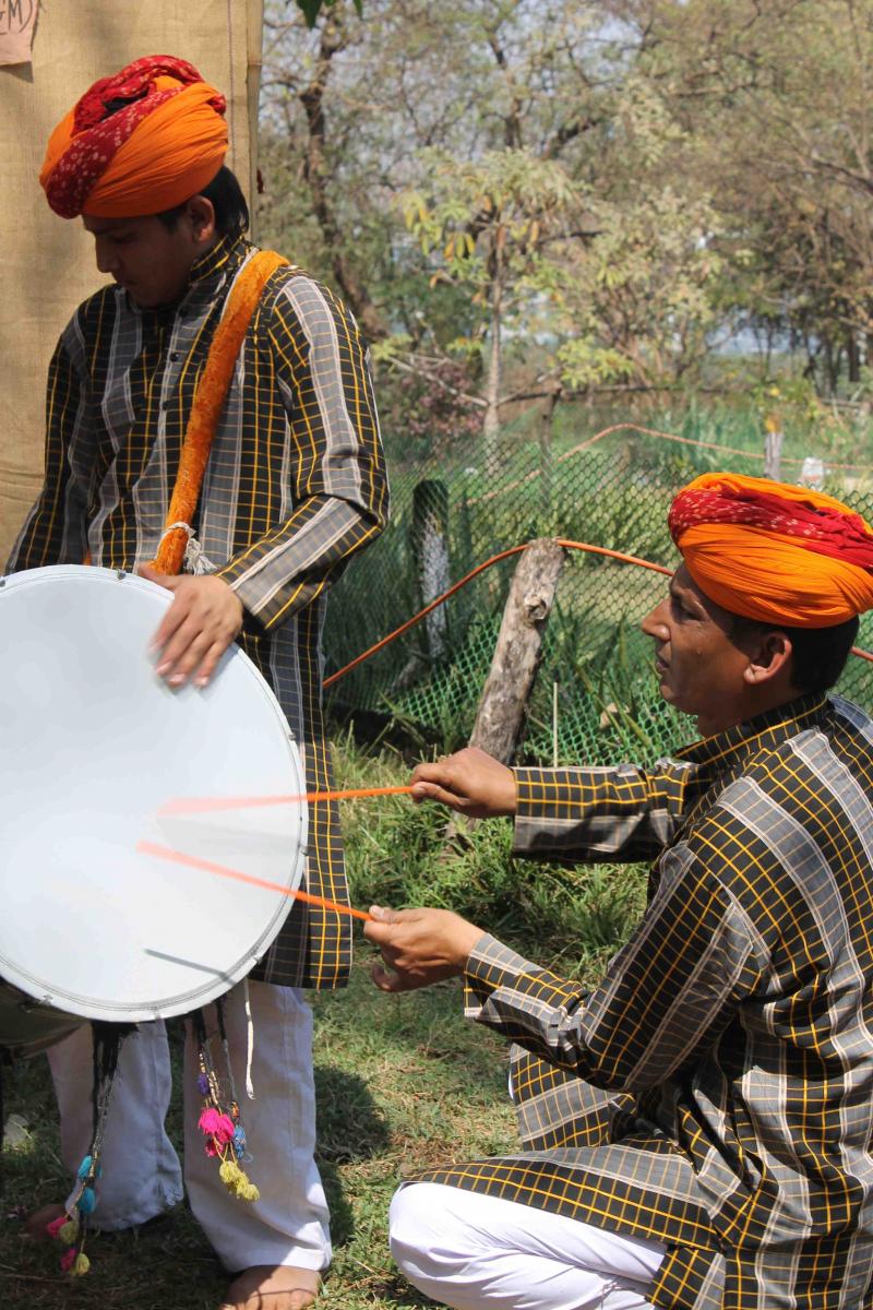 Before playing the Dhol, a Merasi will touch both of his ears with his right hand, acknowledging his guru and Saraswati, the Hindu Goddess of music.