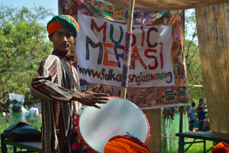 Merasi musicians are only touched by the upper-caste at weddings, when the musician and his Dhol are joyfully welcomed by the song “Dhol mangal le Dhadi gohar aayo” or “do welcome our musician who with his Dhol is bringing happiness and good luck to our home.”
