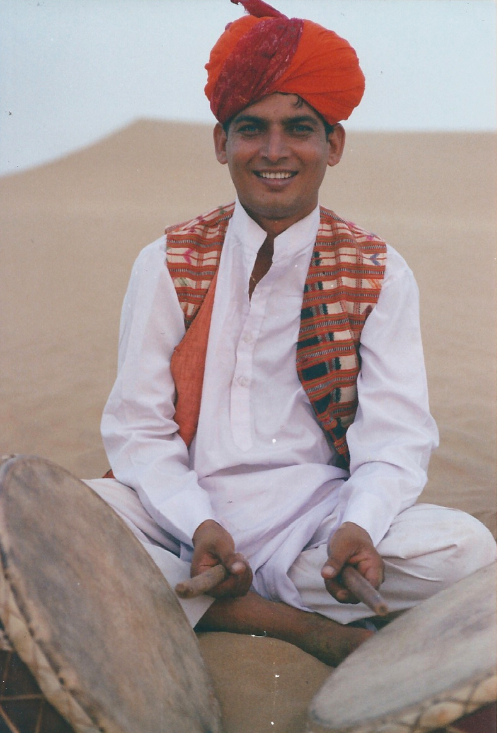 Before sitting down to play the Dhol, a Merasi will touch both of his ears with his right hand, acknowledging his guru and Saraswati, the Hindu Goddess of music and the arts.